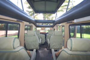 The safari Land cruiser is a four wheel drive car customized for safaris and camping tours- Uniquely designed with a pop up roof and some come with rooftop mounted tent, the safari Land cruiser can accommodate up to 8 people and has enough space for cargo making it suitable for family trips, camping and self drive road trips. It’s designed to operate even in the toughest environments like on rough murram roads in the countryside.